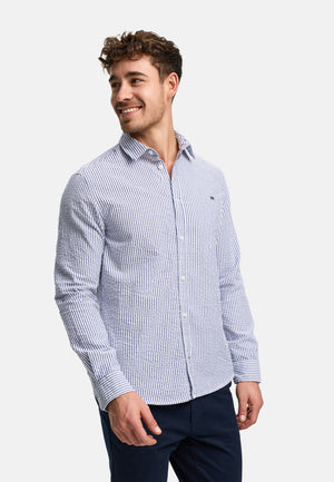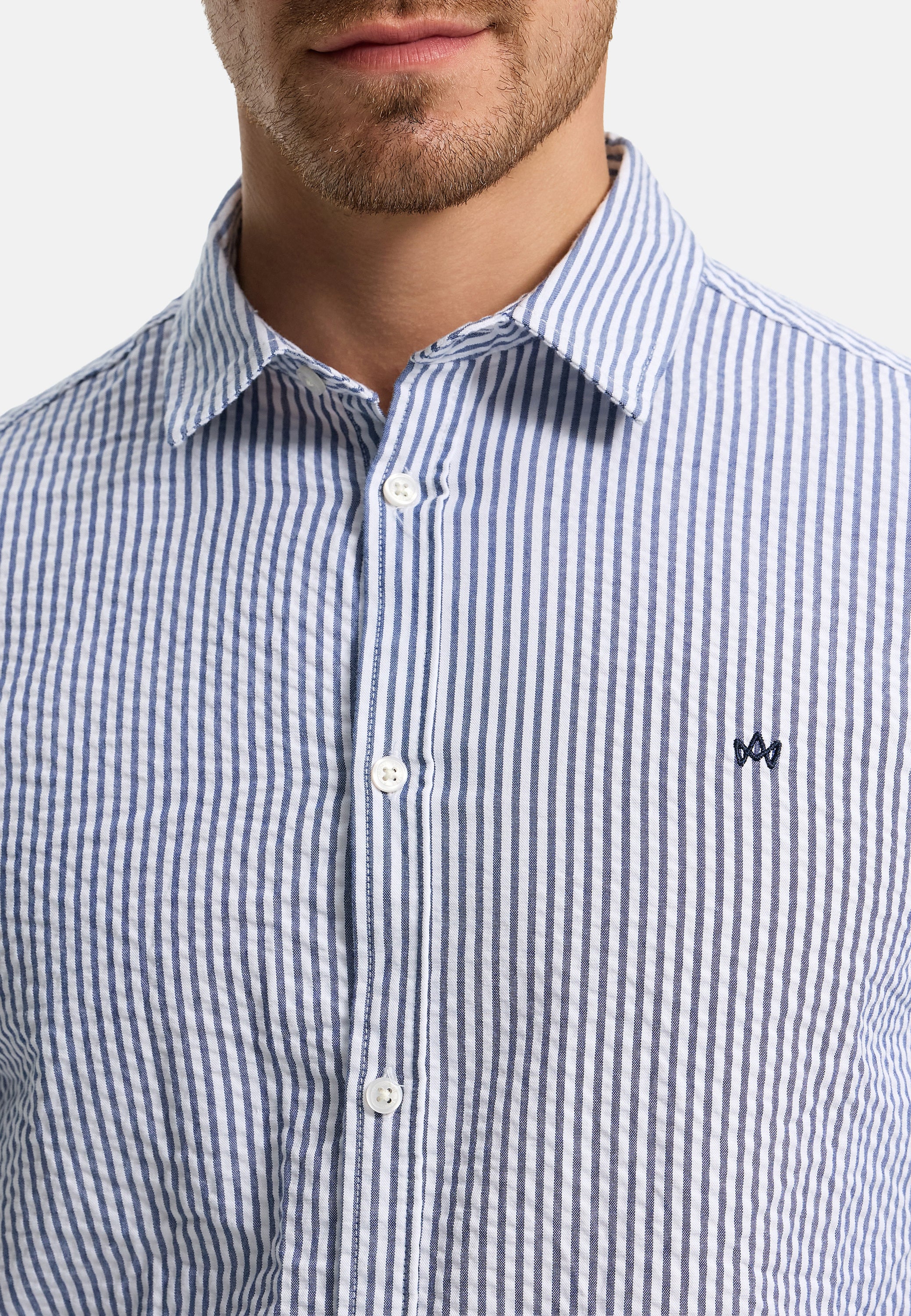 - Schmal geschnittenes Langarm-Hemd mit feinem Streifenmuster. Dezente Logostickerei auf Brusthöhe.