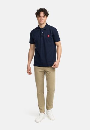- Das Poloshirt ist ein klassisch geschnittenes Oberteil mit einem gerippten Polokragen und einer kurzen Knopfleiste mit zwei Knöpfen auf der Vorderseite.