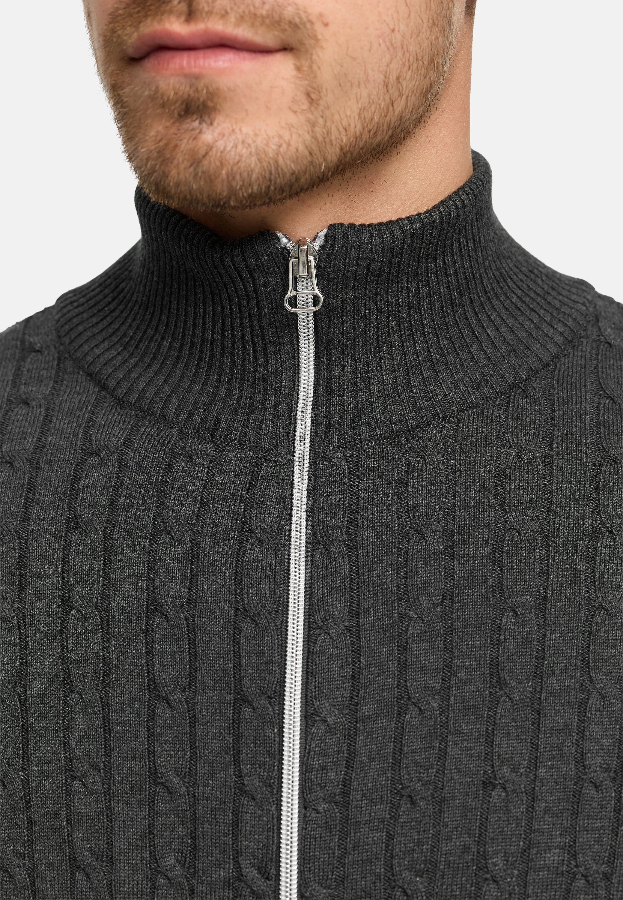 Strickjacke KSCable Zip Charcoal Mix