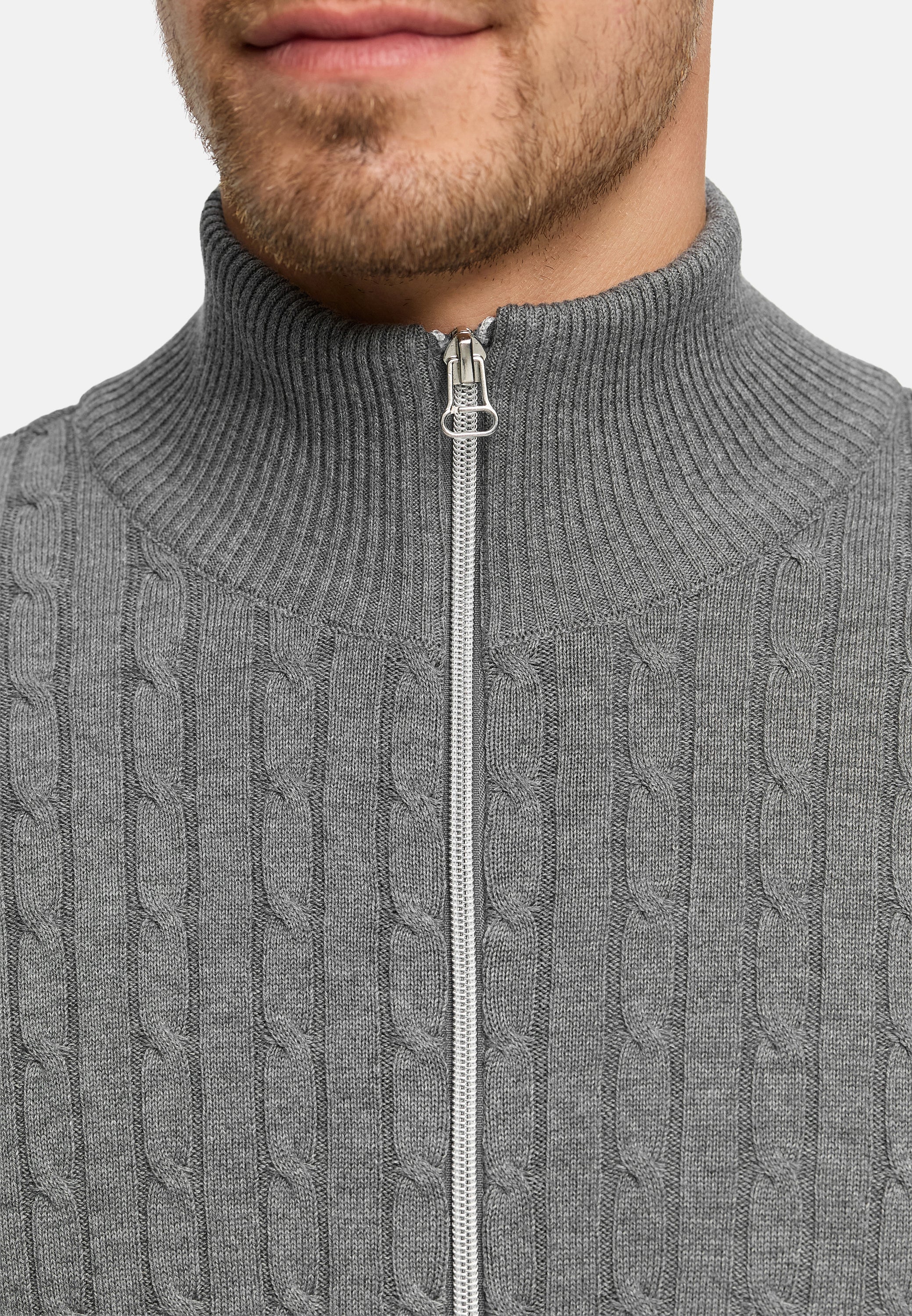 Strickjacke KSCable Zip Lt Grey Mix