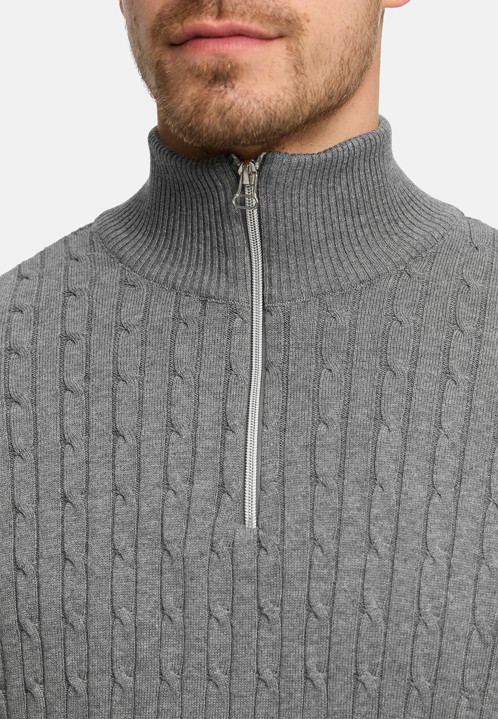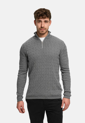 Strickpullover KSCable Half-Zip Lt Grey Mix